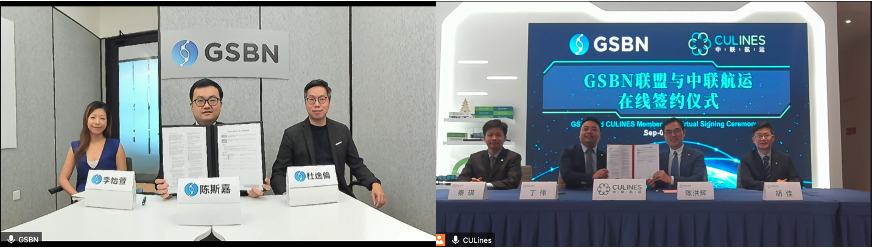 Shipping line China United Ltd. (CULines) joined GSBN on September 1 as the consortium’s latest member to the consortium, designed to include global trade participants of all sizes in shipping and logistics. CULines and GSBN successfully held the online signing ceremony of the cooperation agreement. CEO of GSBN Bertrand CHEN and Chairman and CEO of CULines Raymond CHEN presented the ceremony and delivered remarks.